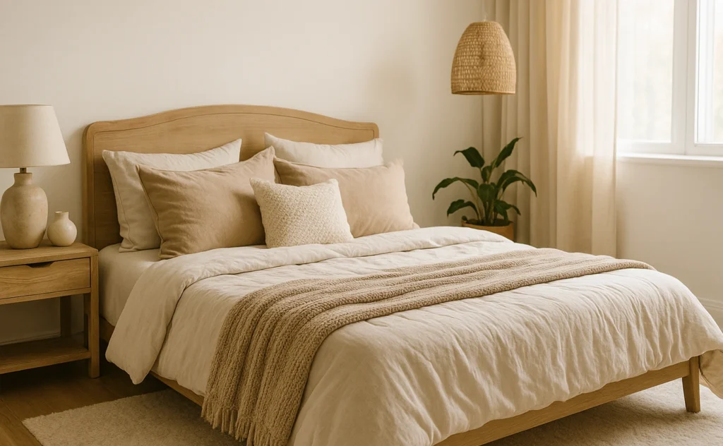 Textiles extend beyond bedding. Consider adding thick curtains to soften windows, a soft rug underfoot for warmth, and throw pillows in a variety of textures. Even switching from metal or glass furniture to wood tones or woven accents can instantly elevate the comfort factor. Natural materials like rattan, oak, bamboo, and plush wool add personality and earthiness to the room.